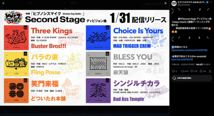Creepy Nuts、KREVA、Zeebra、HOME MADE 家族……映画『ヒプマイ』公開前に押さえたい豪華すぎる歴代提供楽曲