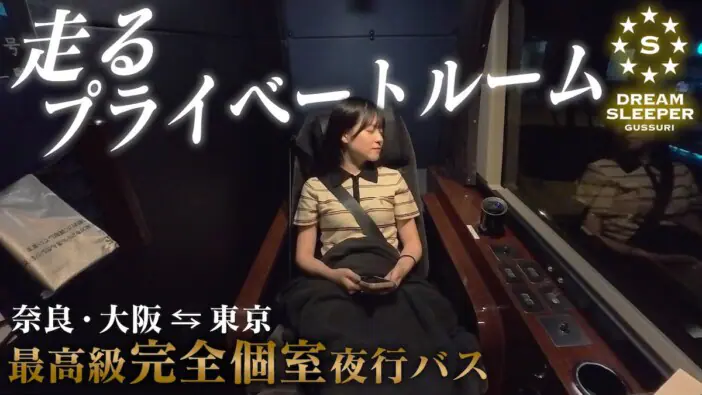 コラム 2025.11.16 11:50 旅系女性YouTuber、完全個室の高級夜行バスに「ホテルみたい」 費用対効果を正直レビュー 鉄道旅を紹介する女性YouTuberのしおねるが自身のYouTubeチャンネルを更新。高級夜行バスについて紹介した。 こじへい YouTubeこじへいしおねる