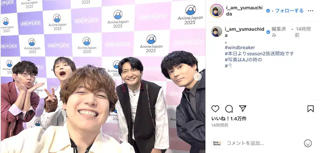 内田雄馬がInstagramを更新し、AnimeJapan 2025での共演者たちとの集合オフショットを公開。TVアニメ『WIN…