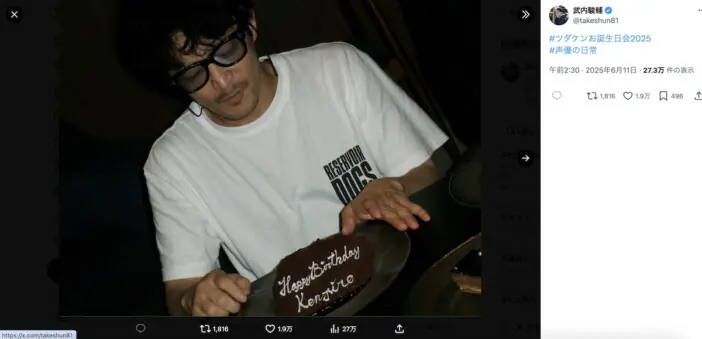 津田健次郎が54歳の誕生日を迎えた。2025年も毎年恒例の「#ツダケンお誕生日会」が開催され、武内駿輔や小野賢章など、参加した声…