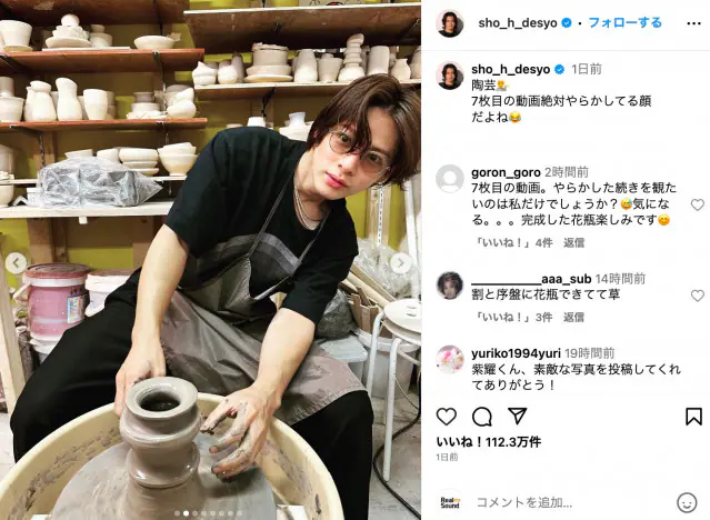 平野紫耀、陶芸体験で“やらかした”写真をアップ 真剣な表情でろくろを回す様子も