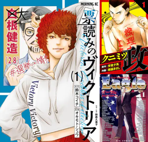 漫画 2025.08.10 11:55 選挙の醍醐味がわかる? 『票読みのヴィクトリア』『クニミツの政』『イーグル』……読者を「知る側」へ誘う選挙漫画3選 総務省によれば、7月20日に行われた参議院議員選挙の投票率は58.51%で、2022年の前回参院選の52.05%から6.46ポイ… 蒼影コウ 漫画鈴木コイチ朝基まさし安童夕馬オキモト・シュウ蒼影コウかわぐちかいじ