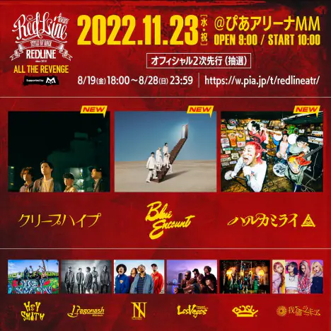 『REDLINE ALL THE REVENGE』第3弾出演アーティストにクリープハイプ、BLUE ENCOUNT、ハルカミライ