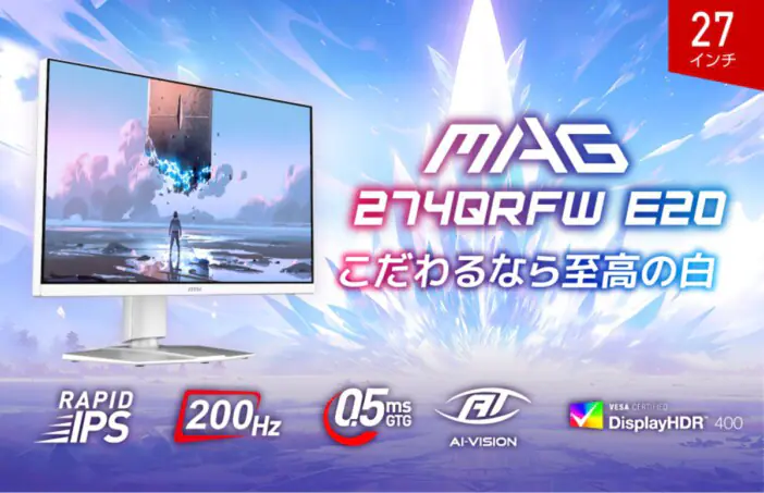 MSIよりホワイト筐体採用WQHD・200Hz対応のゲーミングモニターが登場 白デスクにピッタリ