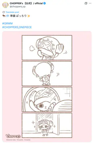 漫画 2025.09.09 19:43 『ONE PIECE』もしチョッパーが現実世界にいたら? 何気ない日常を切り取った「CHOPPER’s」がかわいい 『ONE PIECE』の人気キャラクター「トニートニー・チョッパー」が、海賊の世界を飛び出し、私たちと同じ“現実の世界”で暮らす… 結理乃 結理乃コラム漫画ONE PIECE