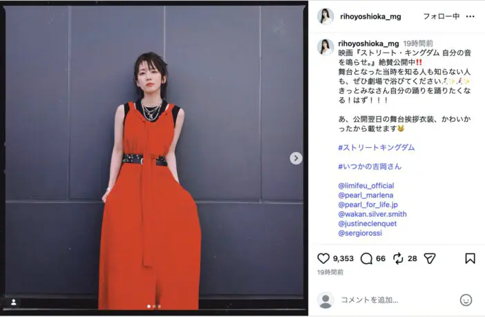 映画『ストリート・キングダム 自分の音を鳴らせ。』サチ役を演じた吉岡里帆のマネージャーInstagramが更新され、公開翌日の舞…