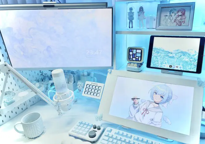 連載 2026.01.17 12:00 イラストレーター・ナナツカが“透き通る水色の世界”で彩る理想の仕事場 創作意欲を高めつつ、機能性にも工夫アリ こだわりのデスクと人物を探っていく本記事。今回はイラストレーターのナナツカにこだわりと普段のデスク使いについて聞いた。 はるまきもえ デスク環境はるまきもえデスクわたしをつくるデスクナナツカ