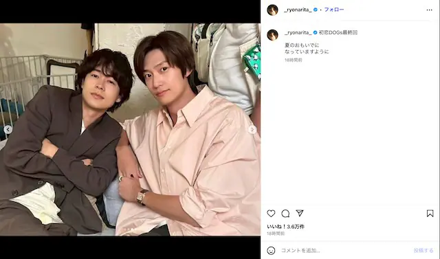 俳優の成田凌が公式Instagramを更新し、9月2日に最終回を迎えたドラマ『初恋DOGs』(TBS系)のオフショットを公開した…