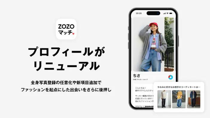 「ZOZOマッチ」、プロフィールの仕様変更 ファッションを通じた出会いを後押し