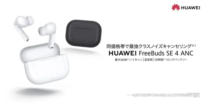 ファーウェイ・ジャパンは、完全ワイヤレスイヤホン『HUAWEI FreeBuds SE 4 ANC』を市場想定価格6,580円、…