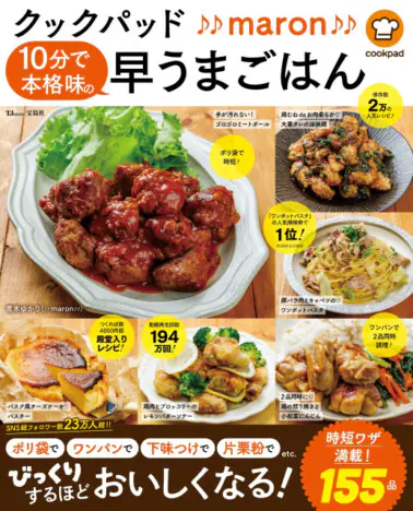 レシピ本『クックパッド♪♪maron♪♪ 10分で本格味の早うまごはん』が9月18日に宝島社より発売される。 著者の ♪…