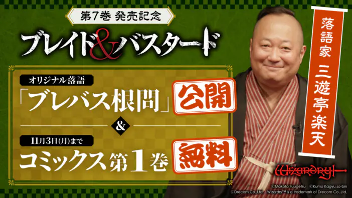 ニュース 2025.10.20 14:54 『ブレイド&バスタード』第7巻発売記念 落語家・三遊亭楽天とのコラボ落語公開 『ブレイド&バスタード』コミックス7巻発売記念で、三遊亭楽天によるオリジナル落語『ブレバス根問』がYouTubeで公開された。 リアルサウンドブック編集部 落語ドリコムメディアブレイド&バスタードドリコム三遊亭楽天