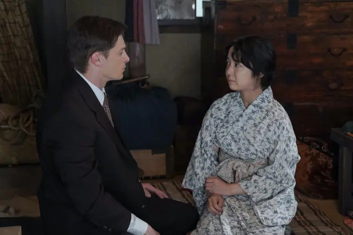 将校クラブを後にする安子(上白石萌音)に、ロバート(村雨辰剛)は「Merry Christmas」と伝える。2人の話す姿は、稔(…