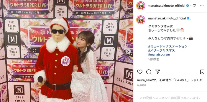 秋元真夏は“タモサンタ“とハグ&賀喜遥香とピース 乃木坂46、『Mステ』出演時のオフショットをアップ