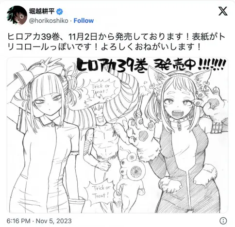 『ヒロアカ』堀越耕平、最新刊発売記念にトガちゃん&お茶子のコスプレイラストを公開 愛らしい姿にファン悶絶