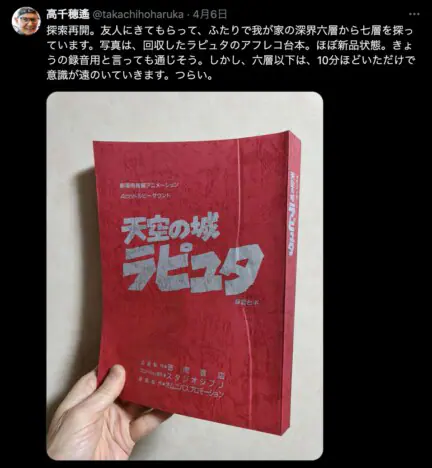 漫画 2025.04.09 11:55 『天空の城ラピュタ』“録音台本”発掘に人気漫画家も興奮 SF作家・高千穂遙氏のお宝がスゴい SF作家で「スタジオぬえ」の設立者としても知られる高千穂遙氏が自身のXにて、自宅に眠っている“お宝”を続々公開中だ。4月6日には… 小原良平 鳥山明原画サイン色紙高千穂遙スタジオぬえ