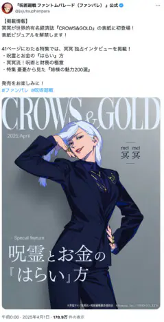 『呪術廻戦』冥冥が世界的有名経済誌の表紙に? スマホゲーム『ファンパレ』公式のエイプリルフールネタが完成度高い