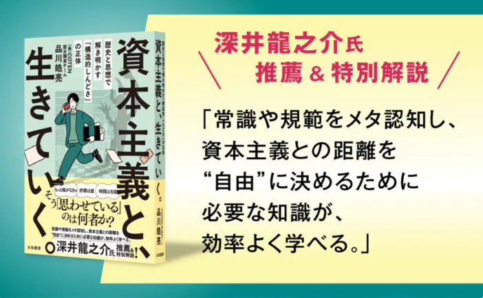 ニュース 2026.02.17 14:00 品川皓亮『資本主義と、生きていく。』刊行へ “構造的しんどさ”の正体に迫る 品川皓亮『資本主義と、生きていく。』2月18日に発売。資本主義の見えない支配構造を膨大な歴史&思想研究から解き明かす。 リアルサウンドブック編集部 大和書房品川皓亮