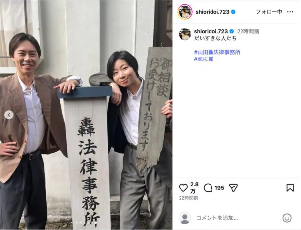 NHK連続テレビ小説『虎に翼』のスピンオフドラマ『山田轟法律事務所』の放送後、主演の土居志央梨がInstagramを更新し、撮影…