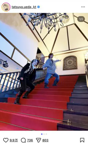上田竜也が11月25日、自身の Instagramを更新。事務所の先輩、堂本光一の倒し方を紹介。見事な階段落ちを披露した。