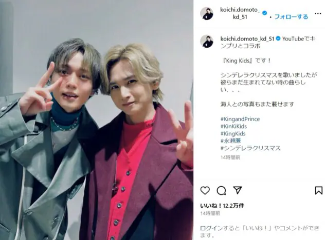 堂本光一が、自身のInstagramを更新。KinKi KidsとKing & Princeのコラボレーションを告知した…