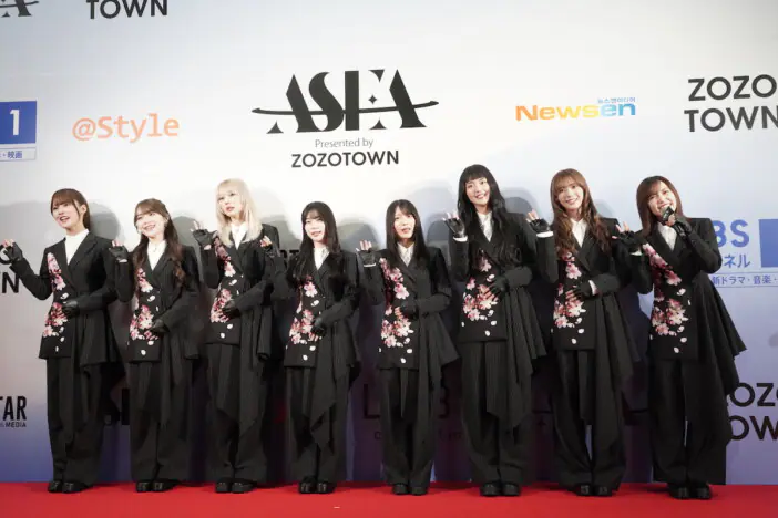 櫻坂46、桜模様のジャケット&パンツスタイルで『ASEA 2025』レッドカーペットに登場