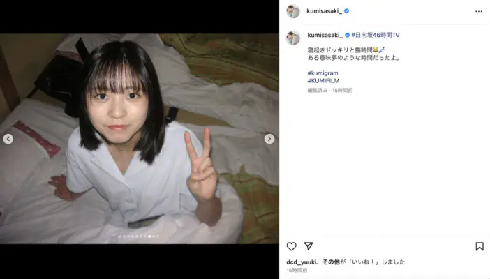日向坂46 佐々木久美が、「日向坂46時間TV」でのパジャマ姿や猫耳を付けたメンバーのオフショットを自身のInstagramに投…