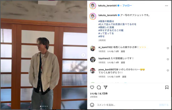 寺西拓人(timelesz)が「寺西の詰め合わせ」として、自身のInstagramに数々の写真を投稿している。