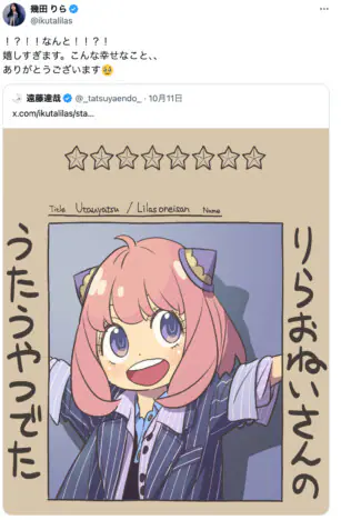 『SPY×FAMILY』アーニャの「うたうやつでた」シリーズ新作は幾田りら! 作者・遠藤達哉のオマージュイラストが話題