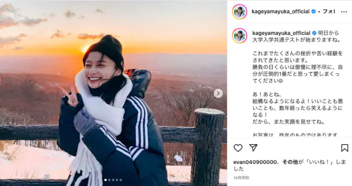 日向坂46の影山優佳が、自身のInstagramにて受験生にエールを送った。 大学入学共通テストが本日1月14日より2日間の…