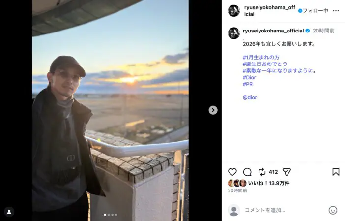 俳優の横浜流星がInstagramを更新し、2026年の幕開けを告げる写真を公開した。 投稿で横浜は「2026年も宜しくお願…