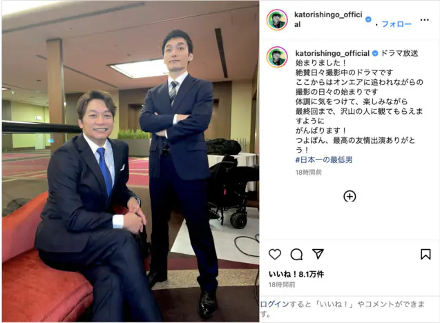 香取慎吾が公式Instagramを更新し、自身が主演を務めるドラマ『日本一の最低男 ※私の家族はニセモノだった』(フジテレビ系)…