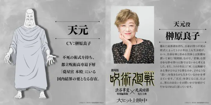 アニメ 2025.11.19 14:15 『呪術廻戦』天元役&ナレーションを榊󠄀原良子が担当 「“老獪”な部分をも併せ持つ人物」 2026年1月8日より放送されるTVアニメ『呪術廻戦』第3期「死滅回游 前編」に登場する天元の声優およびナレーションを榊󠄀原良子… リアルサウンド映画部 アニメMAPPA呪術廻戦榊󠄀原良子