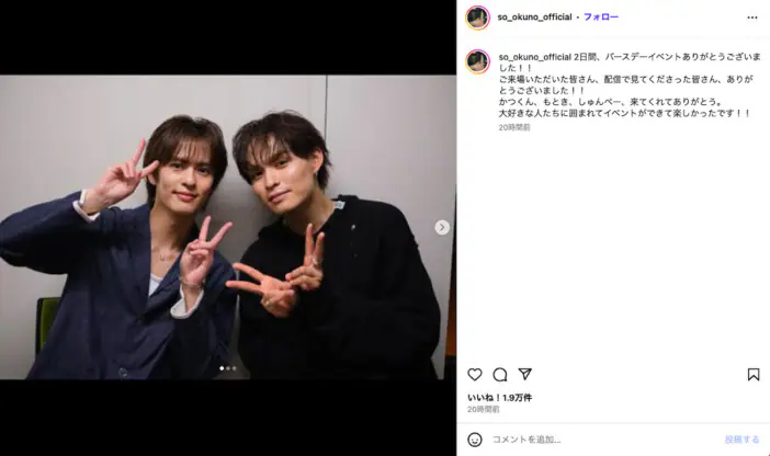 俳優の奥野壮が8月30日、31日にバースデーイベントを開催し、自身のInstagramにオフショットの模様を投稿した。 8月…