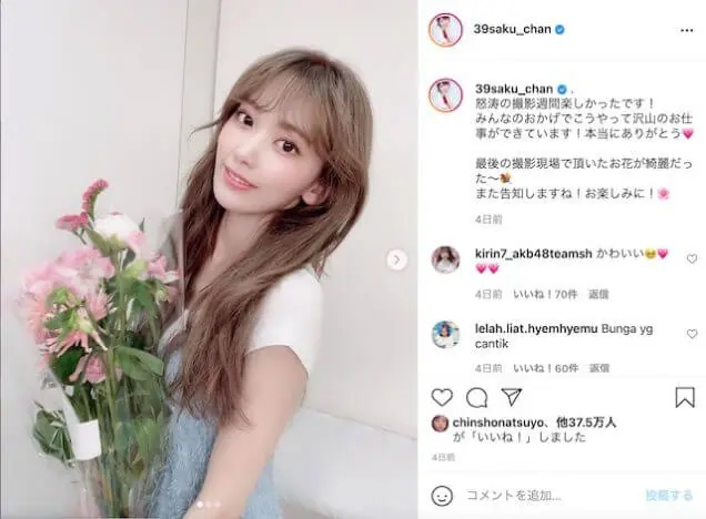 ニュース 2021.05.26 20:20 宮脇咲良、矢吹奈子、本田仁美……元IZ*ONE日本メンバー、個人アカウント続々再開 2021年4月をもって活動終了となった日韓合同のガールズグループ、IZ*ONE。日本メンバーの宮脇咲良、矢吹奈子、本田仁美がそれ… リアルサウンド編集部 矢吹奈子宮脇咲良本田仁美IZ*ONEインスタニュース