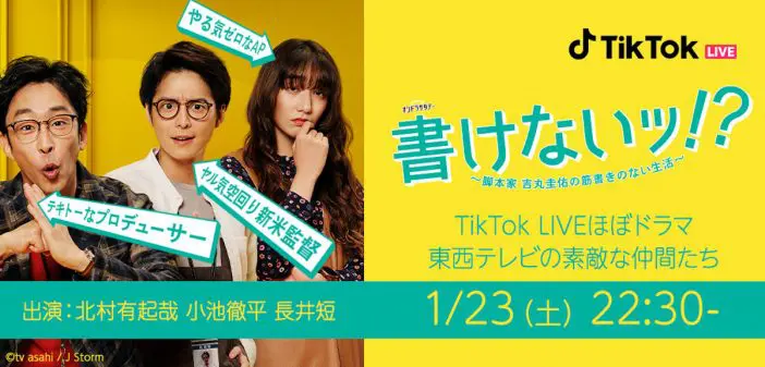 『書けないッ!?』TikTokでオリジナル生ドラマ配信へ 北村有起哉、小池徹平、長井短が出演