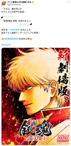 2026年2月13日に公開される『新劇場版 銀魂 -吉原大炎上-』のムビチケカード第1弾の発売が決定し、あわせて場面写真が公開さ…