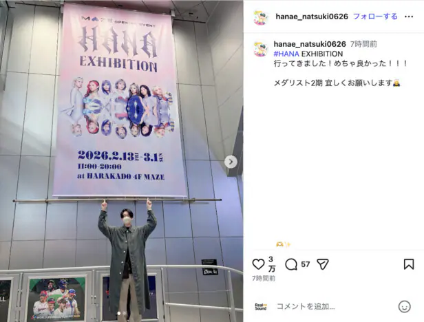 花江夏樹が「HANA EXHIBITION」を訪れたことを報告。会場で“いのりポーズ”を決めたオフショットを公開し、HANAと花…