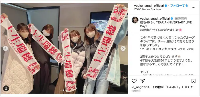 櫻坂46 菅井友香、卒業セレモニー終えた尾関梨香&原田葵へ感謝綴る 『ケヤフェス』当日のオフショットも