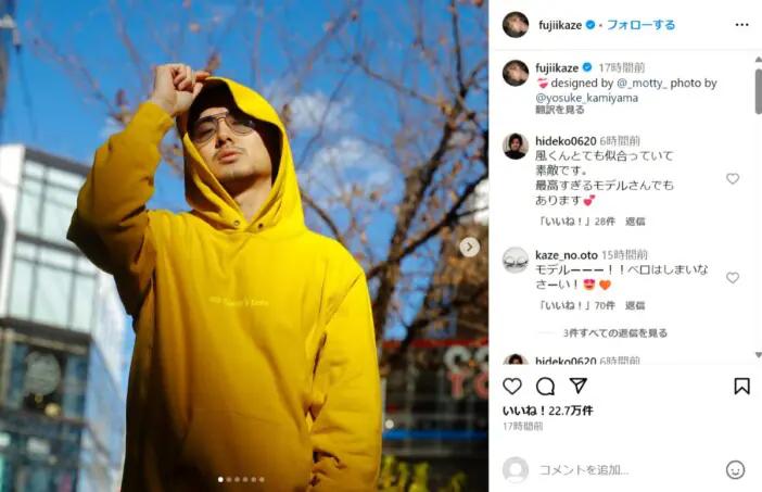 藤井 風が、1月18日に今年に入って初めて自身のInstagramを更新。新作オフィシャルグッズを着用した写真を複数公開した。 …