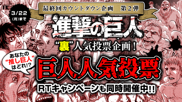 「別冊少年マガジン」4月号(3月9日発売)にて、『進撃の巨人』「第4回キャラクター人気投票」が開催中だが、最終回カウントダウン企…