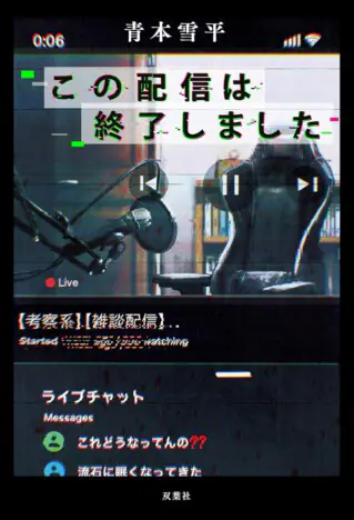 文芸 2025.08.09 12:00 暴露系、心霊系、考察系……ネット配信者たちの欲望の果てにあるものは? 『この配信は終了しました』クロスレビュー 2022年に刊行された『バールの正しい使い方』(徳間書店)が各方面で高く評価された大藪春彦新人賞受賞作家・青山雪平。新刊『この配… 杉江松恋、朝宮運河、タニグチリウイチ、SYO、南 明歩 小説ホラー杉江松恋ミステリタニグチリウイチ双葉社文芸SYO朝宮運河南 明歩青山雪平
