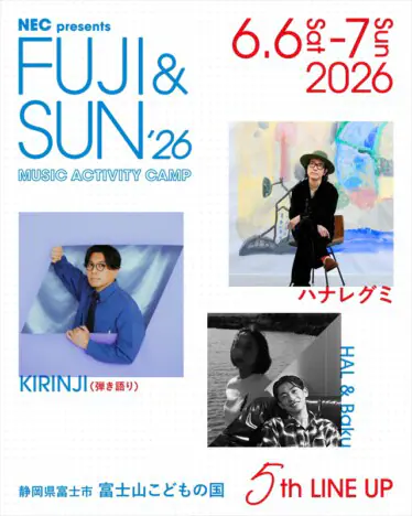 6月6日、7日に富士山こどもの国にて開催されるキャンプイン音楽フェスティバル『FUJI & SUN ’26』の、第5弾ラ…