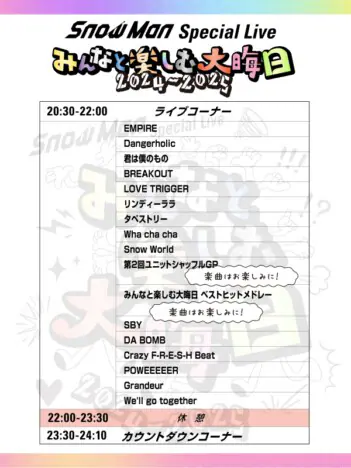 Snow Manが12月31日に行うYouTube生配信『Snow Man Special Live~みんなと楽しむ大晦日!20…