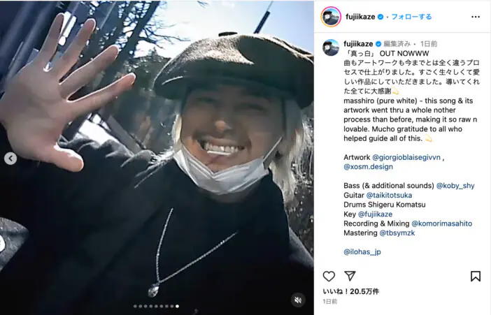 藤井 風、「真っ白」オフショットで無邪気な笑顔 自撮りやレコーディング風景も