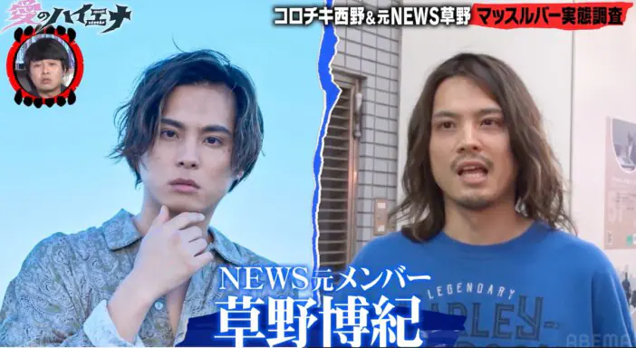 ABEMAオリジナル番組『愛のハイエナ4』。今回は元NEWSの草野博紀とコロチキ西野がマッスルバーに潜入する様子が公開された。