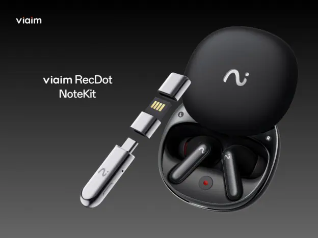会議や通話の内容をワンタッチで録音・文字起こし・翻訳・要約できるAIイヤホン『RecDot(レックドット)』と、USB接続でPC…