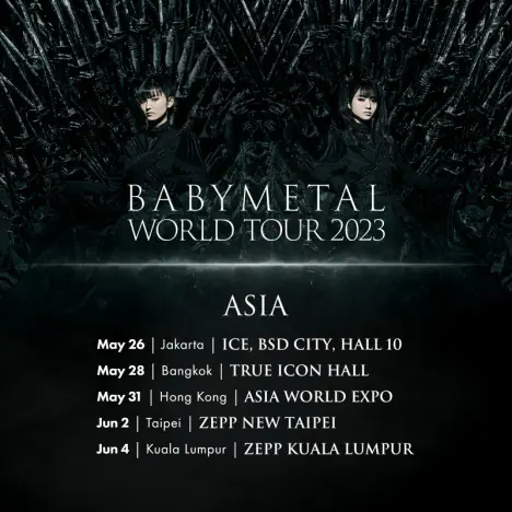 BABYMETALが、自身初となるアジア&オーストラリアでのワンマンツアー『BABYMETAL WORLD TOUR 2023』…