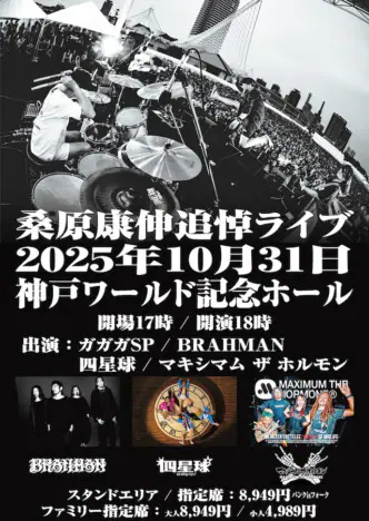 ガガガSP、ベーシスト 桑原康伸の追悼ライブ最終ゲストにマキシマム ザ ホルモン 全4組での開催に