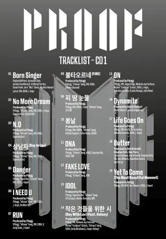 BTSが、6月10日(日本は6月13日)にリリースするニューアルバム『Proof』のCDトラックリストを一部公開した。 …